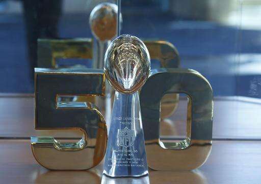 The Lombardi Trophy stands in the trophy case in the lobby of the headquarters of the Denver Broncos in Englewood, Colo., on Wednesday, May 18, 2016. (AP Photo/David Zalubowski) The Associated Press