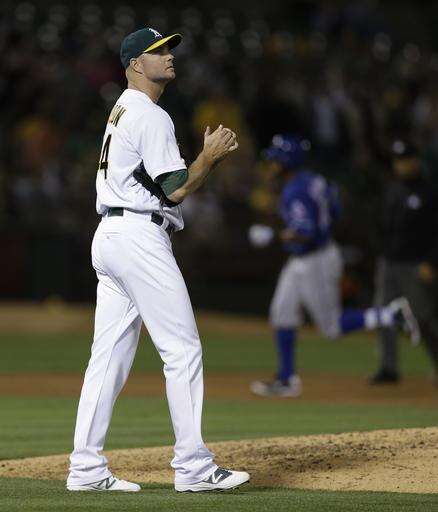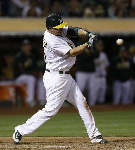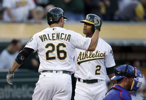 Danny Valencia also homered and drove in a pair of runs for Oakland. Jesse Hahn, called up from the minors to make the start, gave up three runs and 10 hits in 6 2/3 innings.