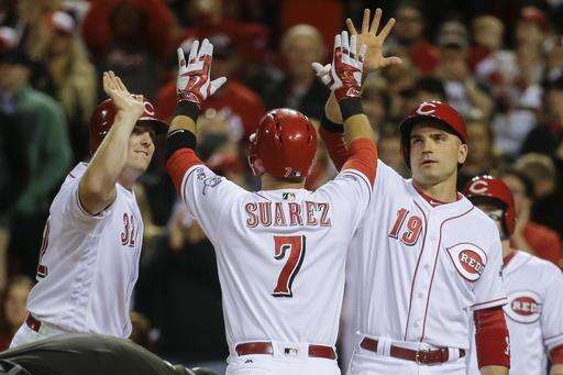 Cleveland's Mike Clevinger made his major league debut and took a 4-1 lead into the sixth, but couldn't hold on. Joey Votto doubled home two runs and Suarez connected off Zach McAllister for a 6-4 lead.