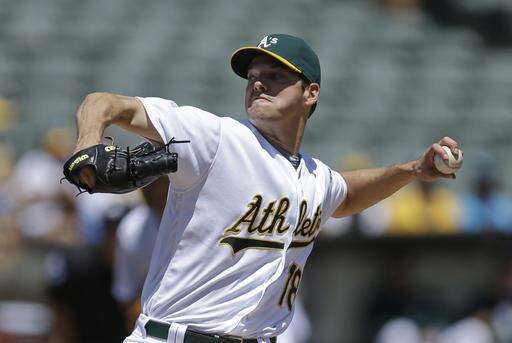 Oakland Athletics pitcher Rich Hill works against the Texas Rangers in the first inning of a baseball game Wednesday, May 18, 2016, in Oakland, Calif. (AP Photo/Ben Margot) The Associated Press