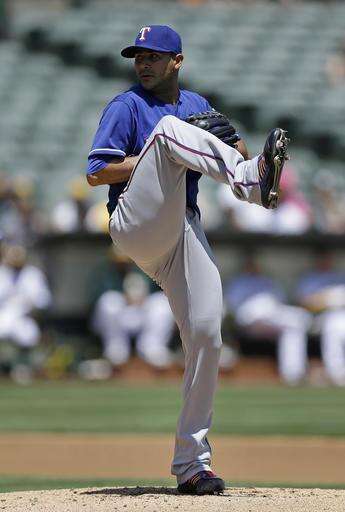 Texas Rangers pitcher Martin Perez works against the Oakland Athletics in the first inning of a baseball game, Wednesday, May 18, 2016, in Oakland, Calif. (AP Photo/Ben Margot) The Associated Press