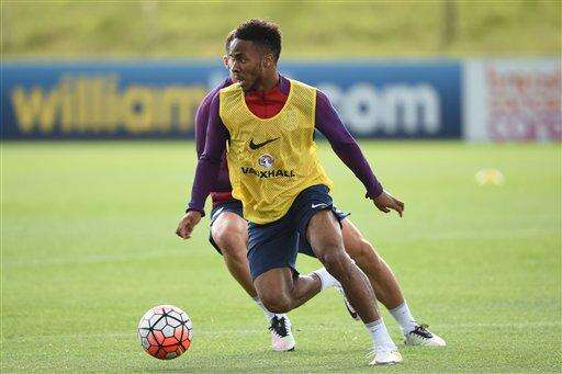 England's Raheem Sterling runs with the ball during their training session at St George's Park, Burton, England, Wednesday, May 18, 2016. England will play an international soccer friendly against Turkey on Sunday, May 22. (Joe Giddens/PA via AP) UNITED KINGDOM OUT - NO SALES - NO ARCHIVES