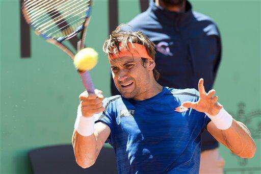 David Ferrer of Spain, returns a ball to Spanish tennis player Marin Cilic of Croatia, during the Semifinal round match of the Geneva Open ATP 250 Tennis tournament, in Geneva, Switzerland, Friday, May 20, 2016. (Martial Trezzini/Keystone via AP) The Associated Press