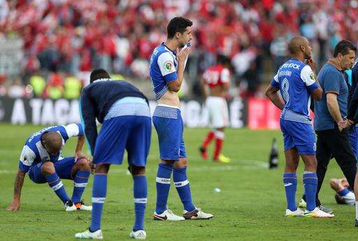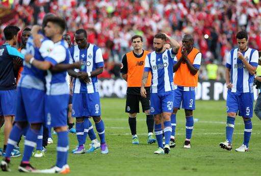 Porto's players after losing the Portugal Cup in the final soccer match against Braga by penalties Sunday, May 22, 2016, at the National stadium in Oeiras, outside Lisbon. (AP Photo/Steven Governo)