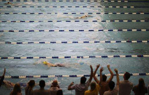 FILE - In this May 14, 2016, file photo, Katie Ledecky, top right, finishes her last lap as the competition swims the other way while trying to catch up in the 400-meter freestyle at the Atlanta Classic swim meet in Atlanta. Ledecky is poised to be one of the biggest stars at the Rio Olympics, but there’s nothing flashy about her away from the pool. She has yet to get her driver’s license, enjoys playing board games, is a fan of Bruce Springsteen, and has no plans to cash in on her expected success. (AP Photo/David Goldman, File) The Associated Press