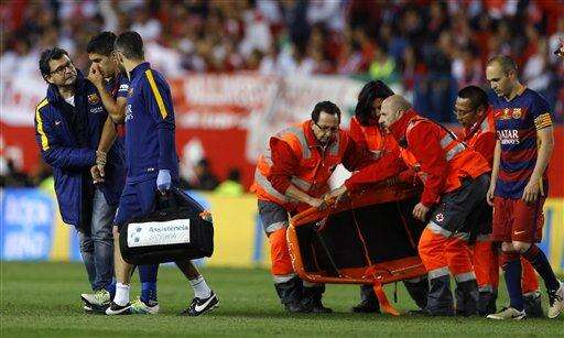 Suarez was in tears after being substituted in the 56th minute of Barcelona's 2-0 extra time win over Sevilla at the Vicente Calderon Stadium in Madrid. He later said on Twitter that he hoped the injury was "nothing so I can be with my national team next week."