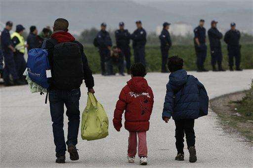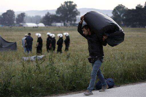 Migrants carry their belongings as they leave from a makeshift refugee camp at the Greek-Macedonian border near the northern Greek village of Idomeni, Tuesday, May 24, 2016. Greek authorities have begun an operation to gradually evacuate the country's largest informal refugee camp of Idomeni, on the Greek-Macedonian border, where more than an estimated 8,400 people have been living for months. (AP Photo/Boris Grdanoski)