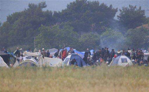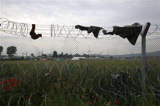 Migrants clothes are hang on a fence as the makeshift refugee camp is seen in the background at the Greek-Macedonian border near the northern Greek village of Idomeni, Tuesday, May 24, 2016. Greek authorities have begun an operation to gradually evacuate the country's largest informal refugee camp of Idomeni, on the Greek-Macedonian border, where more than an estimated 8,400 people have been living for months. (AP Photo/Boris Grdanoski)