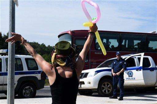 Activists wave to a bus transferring migrants to an organized camp during an operation to evacuate the makeshift refugee camp at the Greek-Macedonian border near the northern Greek village of Idomeni, Tuesday, May 24, 2016. Greek authorities began an operation at dawn Tuesday to gradually evacuate the country's largest informal refugee camp of Idomeni on the Macedonian border, blocking access to the area and sending in more than 400 riot police. (AP Photo/Giannis Papanikos)