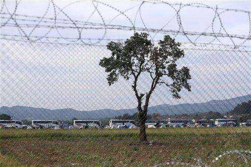 Buses are parked near tents at a makeshift refugee camp at the Greek-Macedonian border near the northern Greek village of Idomeni, Tuesday, May 24, 2016. Greek authorities have begun an operation to gradually evacuate the country's largest informal refugee camp of Idomeni, on the Greek-Macedonian border, where more than an estimated 8,400 people have been living for months. (AP Photo/Darko Bandic)