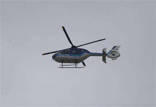 A police helicopter flies over a makeshift refugee camp at the Greek-Macedonian border near the northern Greek village of Idomeni, Tuesday, May 24, 2016. Greek authorities have begun an operation to gradually evacuate the country's largest informal refugee camp of Idomeni, on the Greek-Macedonian border, where more than an estimated 8,400 people have been living for months. (AP Photo/Darko Bandic)