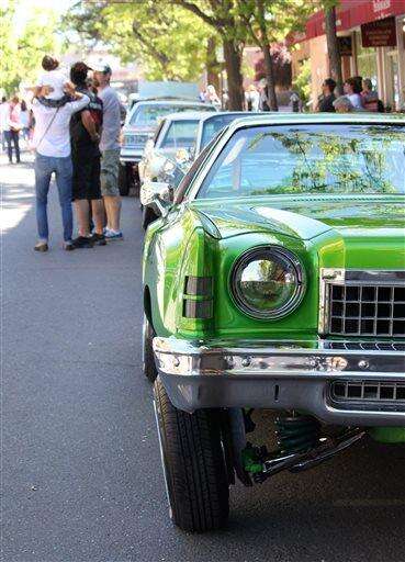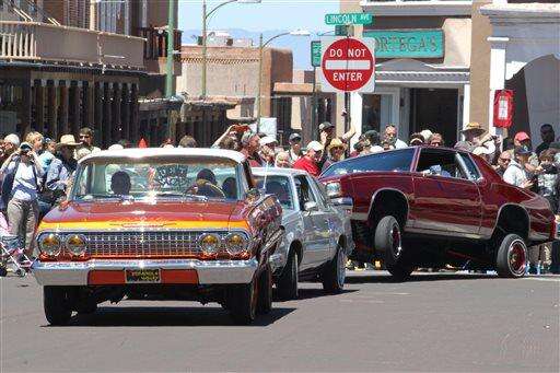 This May 22, 2016 photo shows lowriders parading around the historic plaza in Santa Fe, N.M., as part of the city's Lowrider Summer celebration. The New Mexico History Museum and the New Mexico Museum of Art also are hosting exhibitions highlighting the lowrider culture. (AP Photo/Susan Montoya Bryan) The Associated Press