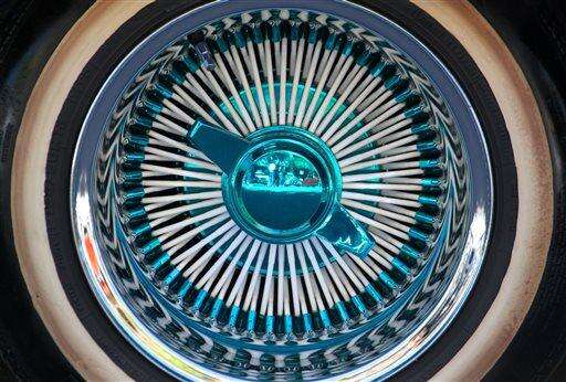 This May 22, 2016 photo shows a polished lowrider rim in downtown Santa Fe, N.M. As part of the city's Lowrider Summer celebration, the New Mexico History Museum and the New Mexico Museum of Art are hosting a pair of exhibitions that highlight lowrider culture. (AP Photo/Susan Montoya Bryan) The Associated Press