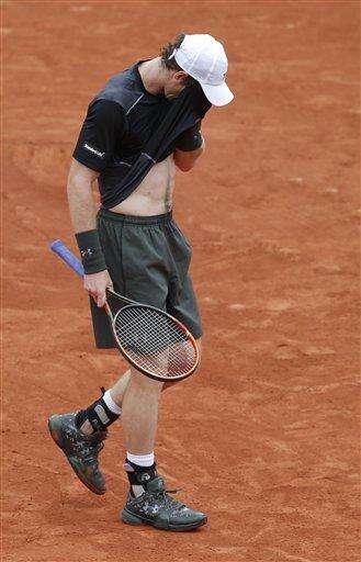 Britain's Andy Murray wipes his face as he plays Radek Stepanek of the Czech Republic during their first round match of the French Open tennis tournament at the Roland Garros stadium, Tuesday, May 24, 2016 in Paris. (AP Photo/Michel Euler) The Associated Press