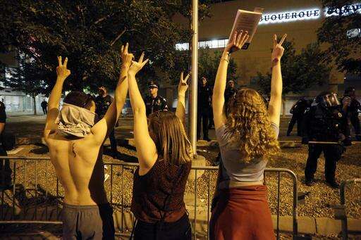 Albuquerque police said several officers were treated for injuries after getting hit by rocks thrown by protesters. At least one person was arrested from the riot, police said.
