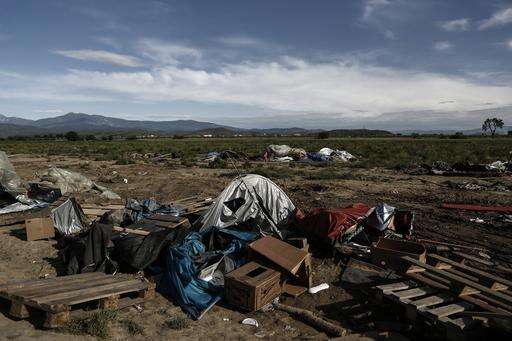 Tents lay abandoned at a makeshift refugee camp during a police operation at the Greek-Macedonian border near the northern Greek village of Idomeni, Wednesday, May 25, 2016. Refugees and other migrants were boarding buses Wednesday on the second day of an operation as more than 700 police were deployed to evacuate the sprawling, makeshift Idomeni refugee camp where over 8,000 people were staying the last three months. (Yannis Kolesidis/ANA-MPA via AP) The Associated Press