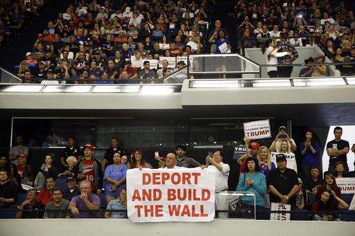 Outside, demonstrators quietly held up signs reading "Love and Peace" and "Migration is beautiful" during the rally, but the modest crowd grew rowdier when Trump supporters came outside. The two sides shouted at each other as dozens of police, some on horseback, moved in to prevent a renewal of the violence Tuesday night in New Mexico.