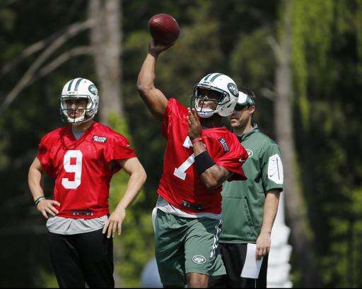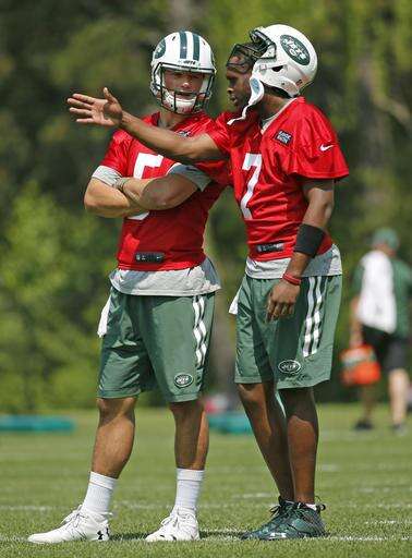 New York Jets rookie quarterback Christian Hackenberg, left, listens as quarterback Geno Smith (7) speaks during NFL football practice, Wednesday, May 25, 2016, in Florham Park, N.J. (AP Photo/Kathy Willens) The Associated Press
