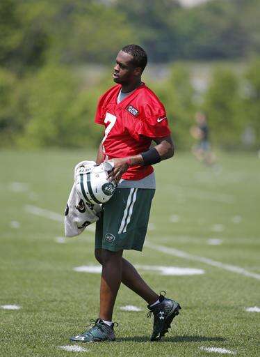 New York Jets quarterback Geno Smith (7) stands on the field with his helmet off during a brief break in a team practice Wednesday, May 25, 2016, in Florham Park, NJ. (AP Photo/Kathy Willens The Associated Press