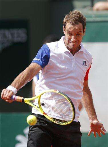 France's Richard Gasquet returns the ball to Bjorn Fratangelo of the U.S. during their second round match of the French Open tennis tournament at the Roland Garros stadium, Wednesday, May 25, 2016 in Paris. (AP Photo/Christophe Ena) The Associated Press