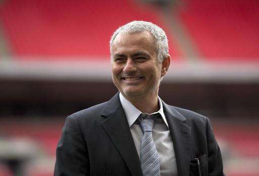 FILE- In this Monday, Feb. 1, 2016 file photo, former Chelsea manager Jose Mourinho smiles as he attends a group photo session pitchside as a guest of FIFA Presidential Candidate Gianni Infantino at Wembley Stadium in London. Manchester United has announced Friday, May 27, 2016, they have hired Jose Mourinho as its new manager, entrusting one of soccer’s most successful coaches to restore the fortunes of England’s most prestigious club, (AP Photo/Matt Dunham, File) The Associated Press