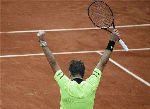 PARIS (AP) - Hitting sublime backhands, defending champion Stan Wawrinka surged 7-6 (5), 6-7 (7), 6-3, 6-2 into the French Open quarterfinals, so in control against Viktor Troicki on Sunday that he amused himself and the crowd by hitting with a ball boy while the Serb took time out for treatment in the third set.