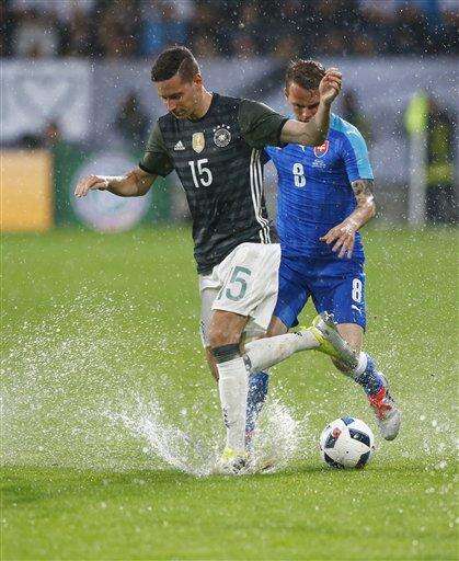 AUGSBURG, Germany (AP) - Germany's European Championship preparations had a setback Sunday in a 3-1 thunderstorm-interrupted defeat to Slovakia.