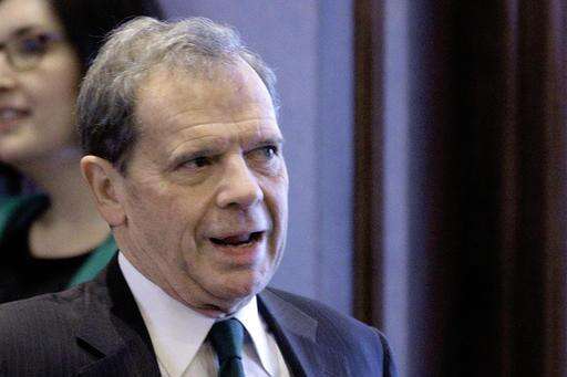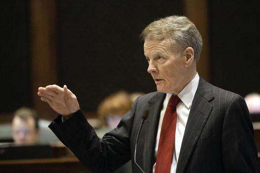 FILE - In this March 17, 2016, file photo, Illinois Senate President John Cullerton, D-Chicago, speaks to lawmakers while on the Senate floor in Springfield, Ill. The Illinois Senate turned back Gov. Bruce Rauner's veto of a five-year pension-savings plan for Chicago, Monday, May 31, 2016, bucking the conservative governor on protests that Democrats are broadening the pension abyss. .(AP Photo/Seth Perlman, File) The Associated Press