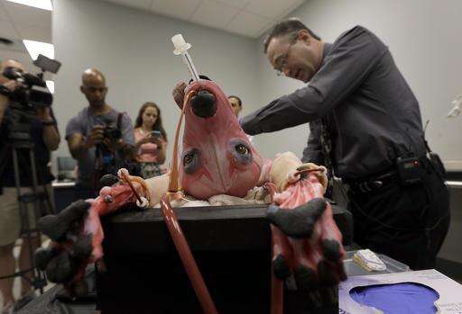 They can be customized with pathologies, illnesses and complications. During Tuesday's news conference, Dr. David Danielson sliced into Alberta's intestine and found two marbles. Another cadaver "ate" a sock.