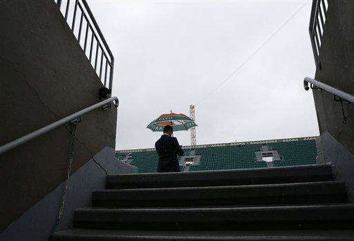 Radwanska vs. Pironkova originally began Sunday, and Radwanska was three games from victory at 3-0 in the second set when play was suspended. They didn't make it back on court until Tuesday, began more than an hour late because of more rain, played for about a half-hour, then were halted by a 2 1/2-hour delay.