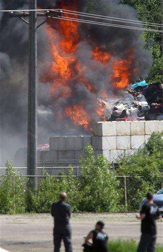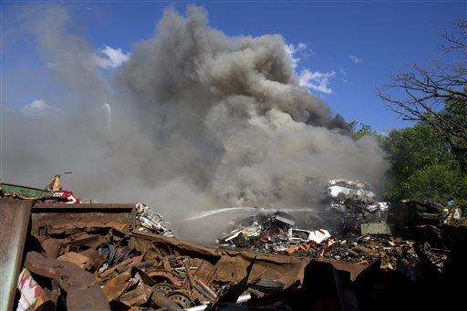 Firefighters respond following an explosion in a scrap pile at All Metals Recycling in Madison, Wis., Wednesday, June 1, 2016. The recycling plant is about 2 miles south of the state Capitol. (Steve Apps/Wisconsin State Journal via AP) MANDATORY CREDIT The Associated Press