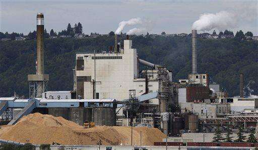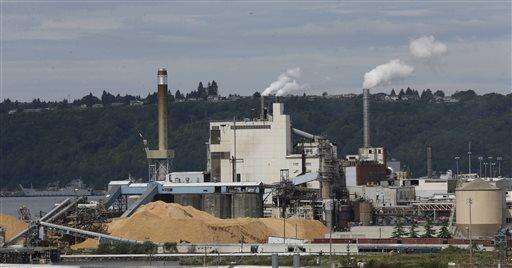 Piles of wood chips sit near the RockTenn paper mill, Wednesday, June 1, 2016, in Tacoma, Wash. Washington state regulators released an updated plan Wednesday to limit greenhouse gas emissions from large polluters, including the mill, as the latest attempt by Gov. Jay Inslee to push ahead with a binding cap on carbon emissions after struggling to win approval from legislators. (AP Photo/Ted S. Warren) The Associated Press