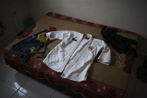 In this May 28, 2016 photo, the judo gi of Yolande Mabika, a refugee from the Democratic Republic of Congo, sits on her bed after she cleaned it at her newly rented apartment in Rio de Janeiro, Brazil. Mabika is hopeful that she will be part of the first ever team competing in the Olympic Games under the Olympic flag, instead of any one country. This week, the two hopefuls will find out whether they made the cut. (AP Photo/Felipe Dana)