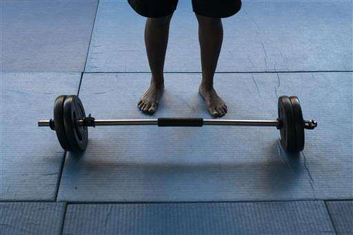 In this May 27, 2016 photo, Yolande Mabika, a refugee and judo athlete from the Democratic Republic of Congo, prepares to lift weights at the Reacao Institute in Rio de Janeiro, Brazil, as she trains in hopes of making the cut for the first Olympic team of refugees. In 2013 Mabika competed at the World Judo Championships, where she says officials left them at their hotel for three days prior to the competition without food, money or passports, leading her to apply for asylum in Brazil. "A few days before our fight, I was very, very hungry. I almost died," said Mabika, who is 28. (AP Photo/Felipe Dana)