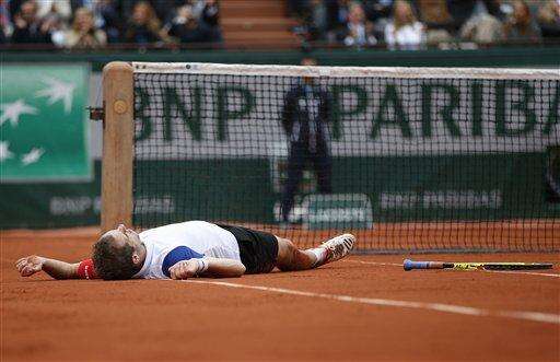 Hoping to see Gasquet become the first Frenchman to hoist the trophy since Yannick Noah in 1983, spectators urged him on with choruses of "Ree-shard!" They even loved a tremendous point Gasquet lost, when he wound up flat on his back, leaving his arms, legs, shirt, socks and shoes caked with the rust-colored dirt.