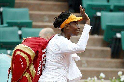 With the temperature around 60 degrees (16 degrees Celsius), Venus warmed up in a zipped-up gray coat, something that seemed more appropriate for winter wear. She came up short in a bid to get to the quarterfinals at Roland Garros for the first time in a decade, dropping eight games in a row during a 6-2, 6-4 loss to No. 8 Timea Bacsinszky.