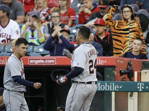Santiago and his bullpen couldn't protect that huge early lead. He gave up early homers by Miguel Cabrera and Justin Upton, and he walked two in the seventh before Bedrosian gave up Kinsler's grand slam into the short porch in left field. Cabrera, Cron, Upton and Trout all homered in the first two innings alone, with Trout's 12th shot of the season putting the Angels up 5-2.