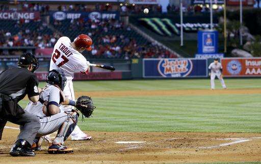 Mike Trout also hit a three-run homer during the Angels' 17-hit performance in their ninth consecutive home victory over the Tigers. Jefry Marte homered and had a career-high four hits against his former Detroit teammates.