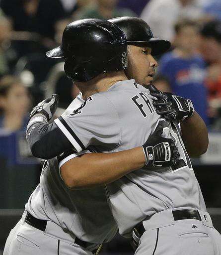 Chicago White Sox's Todd Frazier, right, hugs first baseman Jose Abreu after hitting a two-run home run against the New York Mets during the sixth inning of a baseball game, Tuesday, May 31, 2016, in New York. (AP Photo/Julie Jacobson)