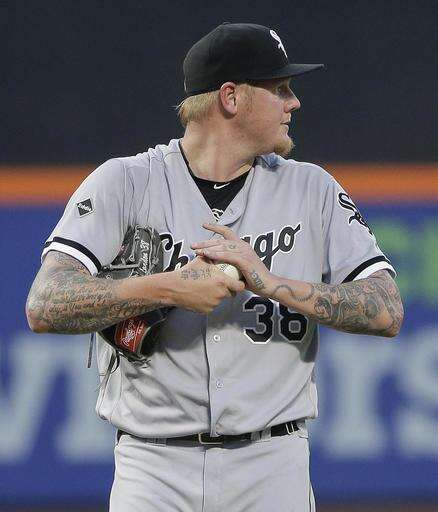 Chicago White Sox pitcher Mat Latos (38) walks back to the mound after giving up a two-run home run to New York Mets' Neil Walker during the third inning of a baseball game, Tuesday, May 31, 2016, in New York. (AP Photo/Julie Jacobson)