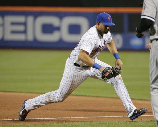 New York Mets first baseman James Loney chases down a hard hit ball by Chicago White Sox's Jose Abreu during the sixth inning of a baseball game, Tuesday, May 31, 2016, in New York. (AP Photo/Julie Jacobson)