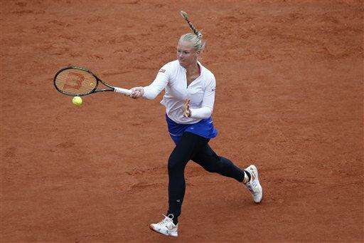 Netherlands' Kiki Bertens returns the ball in the semifinal match of the French Open tennis tournament against Serena Williams of the U.S. at the Roland Garros stadium in Paris, France, Friday, June 3, 2016. (AP Photo/Christophe Ena) The Associated Press