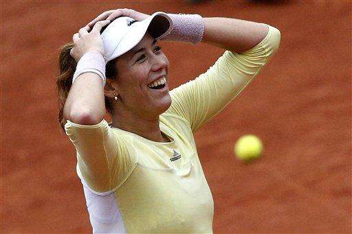 Spain's Garbine Muguruza smiles after defeating Australia's Samantha Stosur walk back after their semifinal match of the French Open tennis tournament at the Roland Garros stadium, Friday, June 3, 2016 in Paris. Muguruza won 6-2, 6-4. (AP Photo/Christophe Ena) The Associated Press