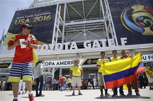 Fans walk outside of Levi's Stadium before a Copa America Centenario Group A soccer match between the United States and Colombia in Santa Clara, Calif., Friday, June 3, 2016. (AP Photo/Marcio Jose Sanchez)