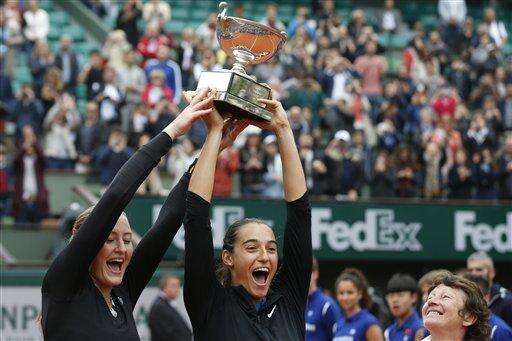 PARIS (AP) - The French pair of Caroline Garcia and Kristina Mladenovic has secured a rare triumph for the home nation at the French Open, winning the women's doubles to give spectators on Court Philippe Chatrier a victory to cheer before they watch Andy Murray play Novak Djokovic in the men's final later on Sunday.