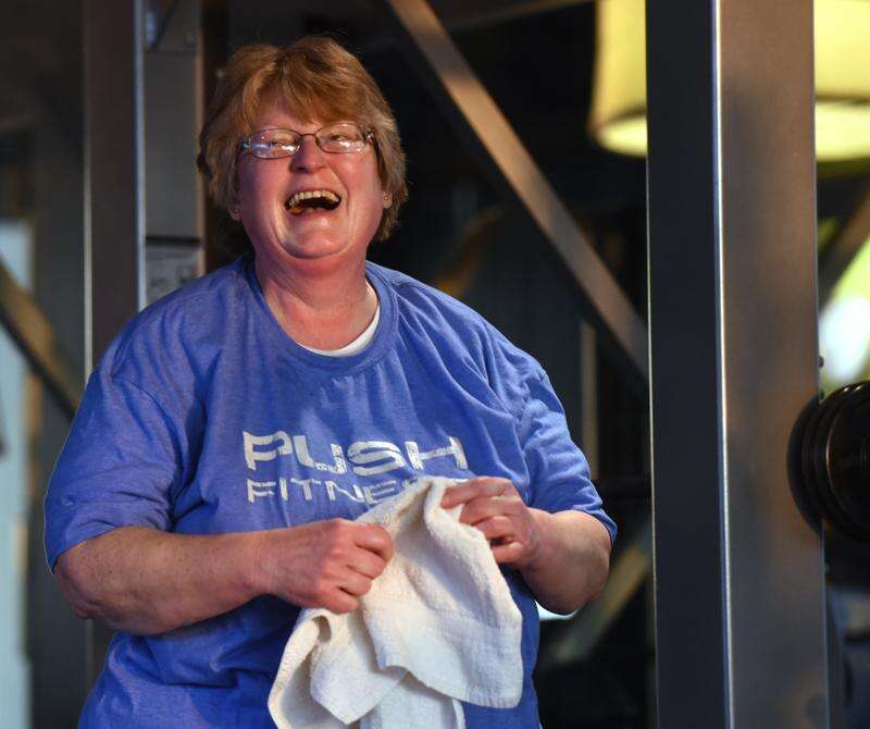 Trainer Patrick Stille helped ease her reservations about of weight training. "Yes," Miller admits, "On my first workout at Push Fitness, I did mention my fear of weights to Patrick." Sharon credits him with helping her overcome gym fears and a very rocky start holding planks.
