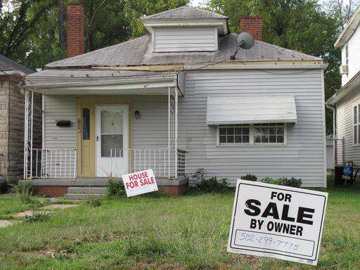 FILE - In this Aug. 27, 2012, file photo, a for sale signs sit in the front yard of Muhammad Ali's boyhood home in Louisville, Ky. In âMuhammad Ali: Athlete of the Centuryâ, a collection of Associated Press stories and visuals about of the boxing champion, AP reporters and photographers captured the life of Ali as he made news both professionally and personally over several decades.(AP Photo/Bruce Schreiner, File)