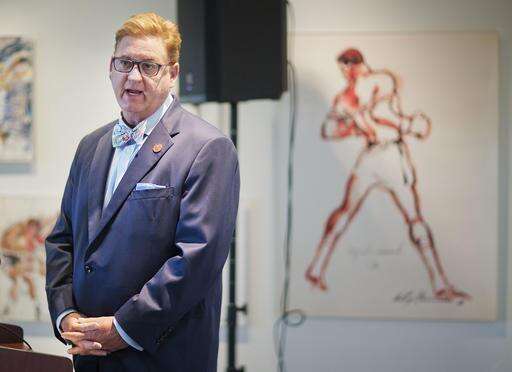 Muhammad Ali family spokesman Bob Gunnell speaks at a news conference regarding Ali's funeral plans at the Muhammad Ali Center Monday, June 6, 2016, in Louisville, Ky. The president of Turkey and king of Jordan joined the long line of world leaders, religious figures and superstars set to speak at Ali's funeral Friday. (AP Photo/David Goldman)