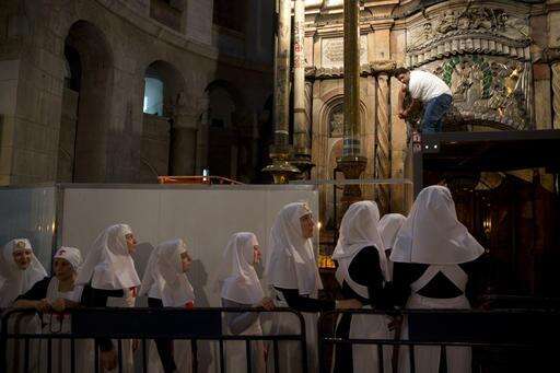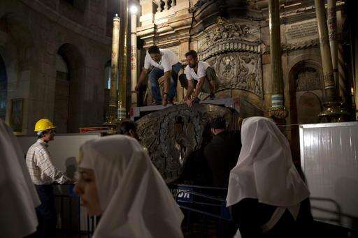 This time, though, the clergymen put aside their differences - a reflection of the dire need for the repairs. Last year, Israeli police briefly shut down the building after Israel's Antiquities Authority deemed it unsafe, prompting the Christian denominations to join forces.