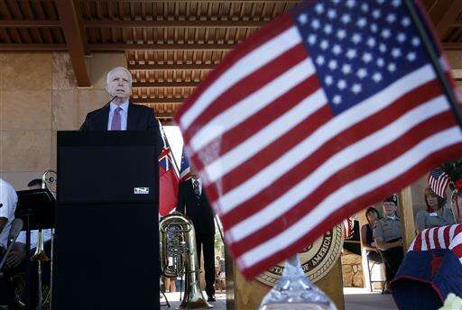 On Memorial Day, McCain, who chairs the Senate Armed Services Committee, spoke at a ceremony at the large veteran's cemetery on the outskirts of town, delivering heartfelt remarks about unheralded bravery and warning that peace is always only temporary.